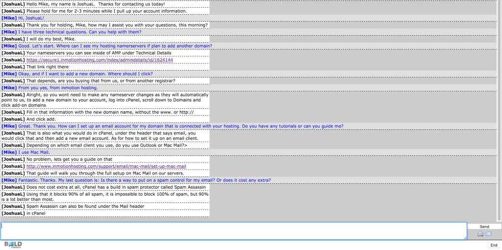 Tetapi saya akhirnya memilih InMotion Hosting kerana saya berjaya dapatkan jawapan untuk masalah saya.