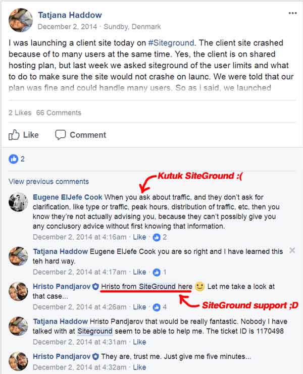 Setelah berjam-jam chatting dengan kedua-dua support dari InMotion Hosting & SiteGround, saya dapati kedua-dua hosting punya support adalah WORLD CLASS. Sangat gila! Mereka ada sistem support mereka sendiri (ticket support) tapi mereka juga masuk ke dalam group FB yang bukan milik mereka dan beri support di luar dari website hosting mereka!