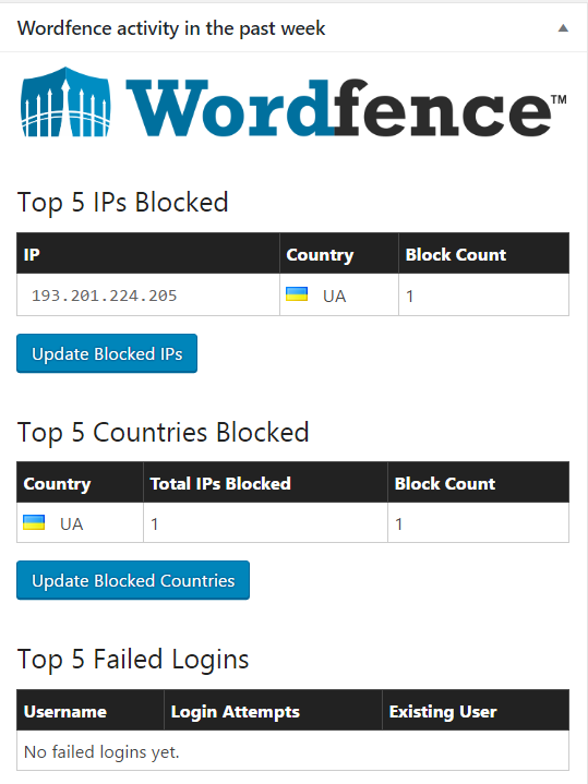 Ini plugin yang boleh bantu kebalkan website kita dari di-hack dari luar negara. Dia akan bagitau terus siapa yang cuba hack dan dari mana! Ini contoh dalam website saya sendiri (dia akan keluar di bahagian Dashboard).